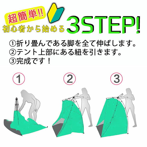 傘のように広げるだけの簡単準備! お着替えテントとしても利用できる2WAYタイプ。