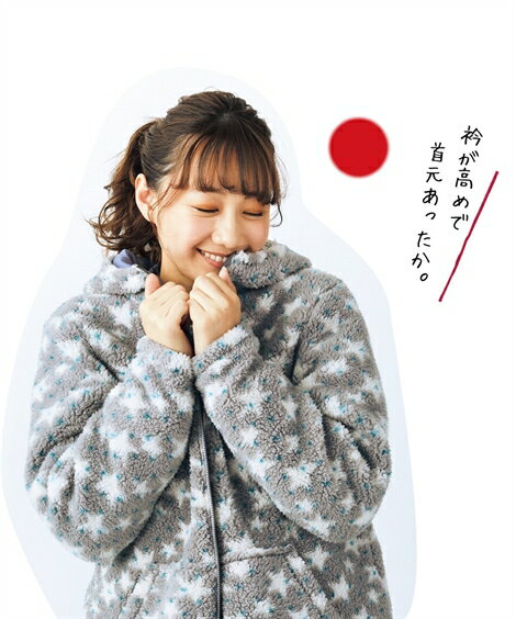 もこもこボアが体をふんわり包み込み、衿が高めなので首元まであったか。