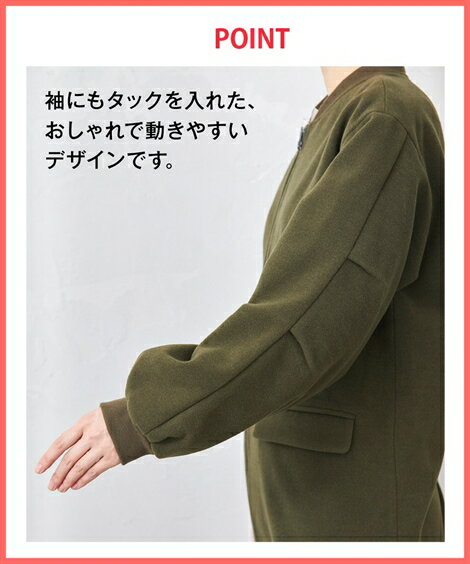 タックを入れたふっくら袖、裾はコード&ストッパー付きでしっかり絞るとコクーンシルエットに。