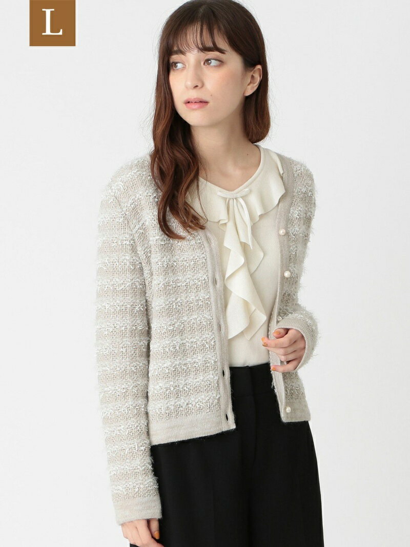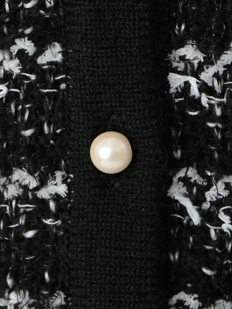 【デザイン・コーディネートポイント】ツイード柄編地を全面に使用し、カーディガンとしても1枚着のPOとしても合わせられるニットカーディガンです。